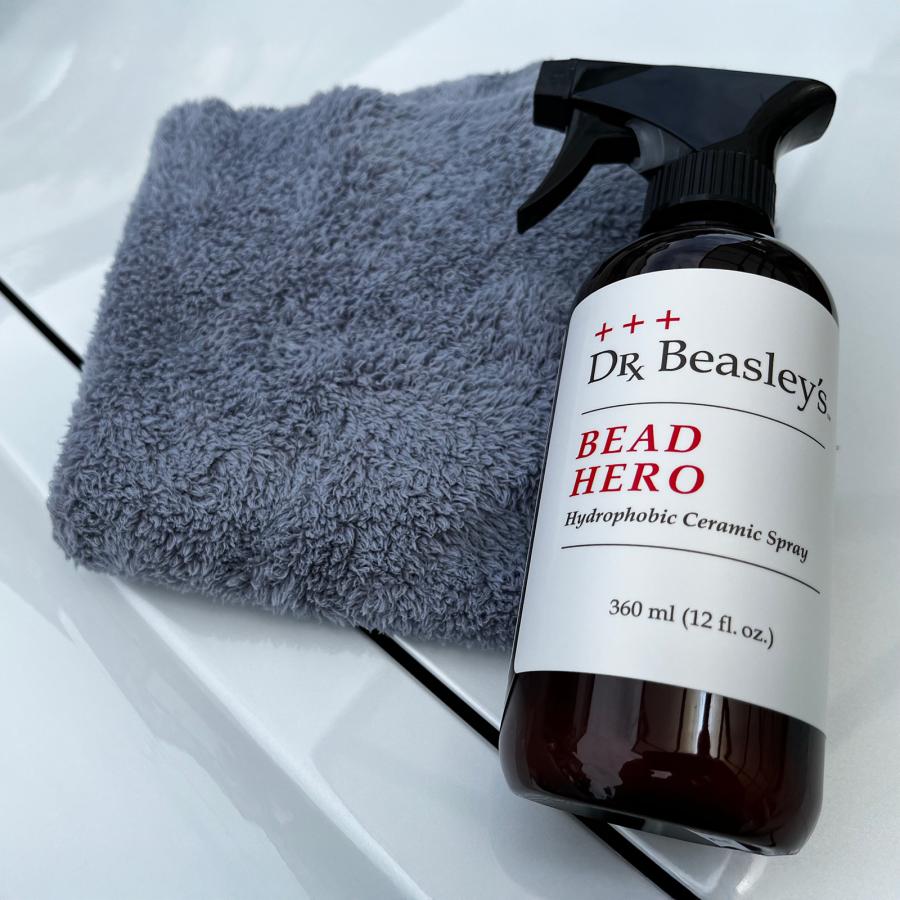 撥水は当たり前。ビードヒーローは水滴を動かすことで、汚れを一緒に洗い流し、水ジミの発生も防ぎます。
