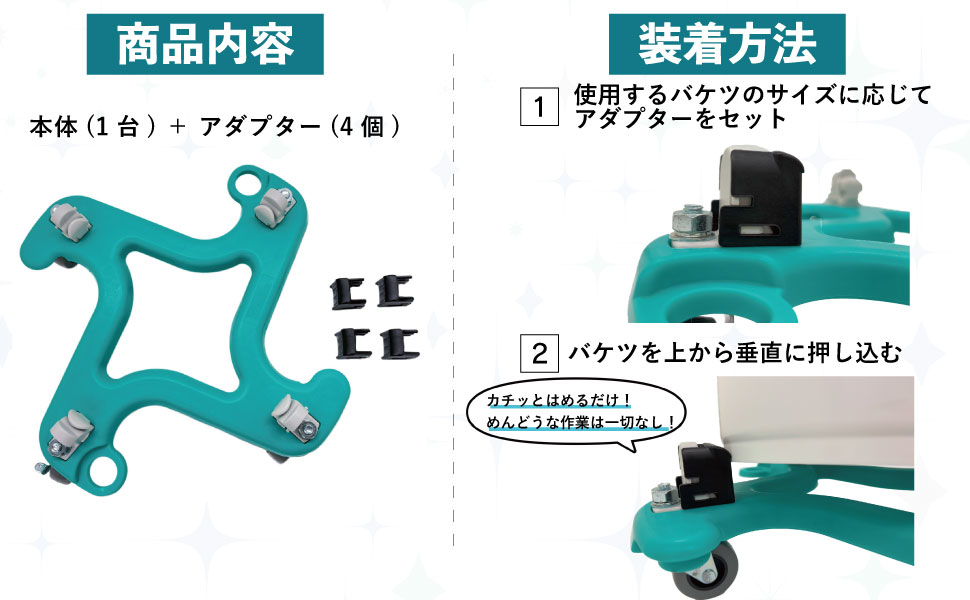 バケツのサイズに合わせ、アダプターを取り外してバケツが固定されるよう調整してください。