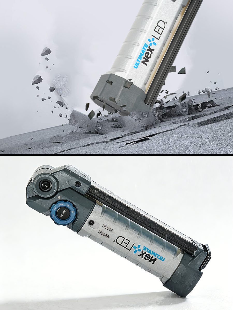 【プロ仕様の耐久性】 IP66 の防水性能と IK07 の耐衝撃定格を備えた高品質アルミニウムハウジングを採用。ショップ内での手荒な扱い、落下、濡れた状況にも耐えうる設計。要求の厳しいプロのディテーラー、整備士、自動車技術者のために作られています。