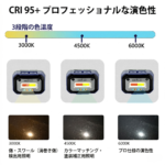 | 色温度 | 6000K / 4500K / 3000K(3段階調整) |