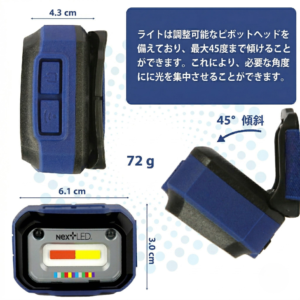 ABSプラスチックとTPU(熱可塑性ポリウレタン)で作られており、重量はわずか 72g。長時間使用しても快適なフィット感を提供します。信頼性の高いカーペイント用ライトを必要とするプロフェッショナルに最適な選択肢です。