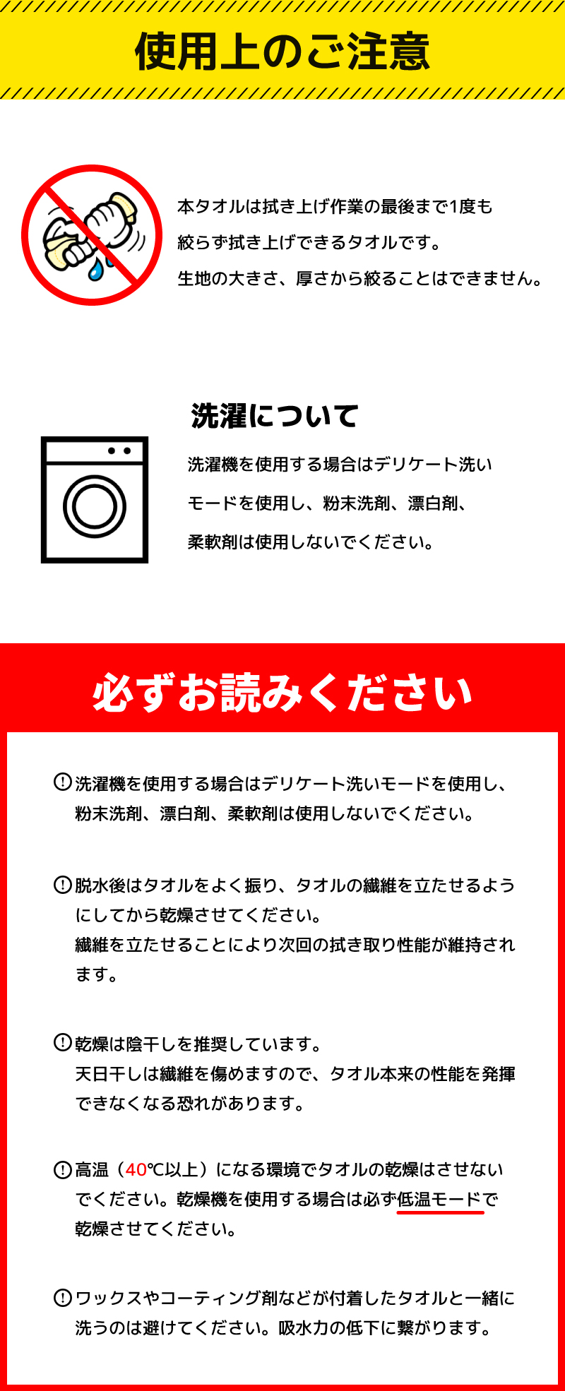 ●1060gsmのタオルで優しく、素早く塗装面の拭き上げを実現