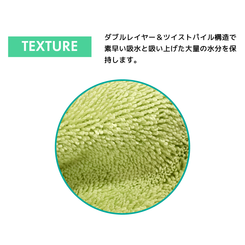 ●ダブルレイヤーツイストパイル構造で最高の吸水力