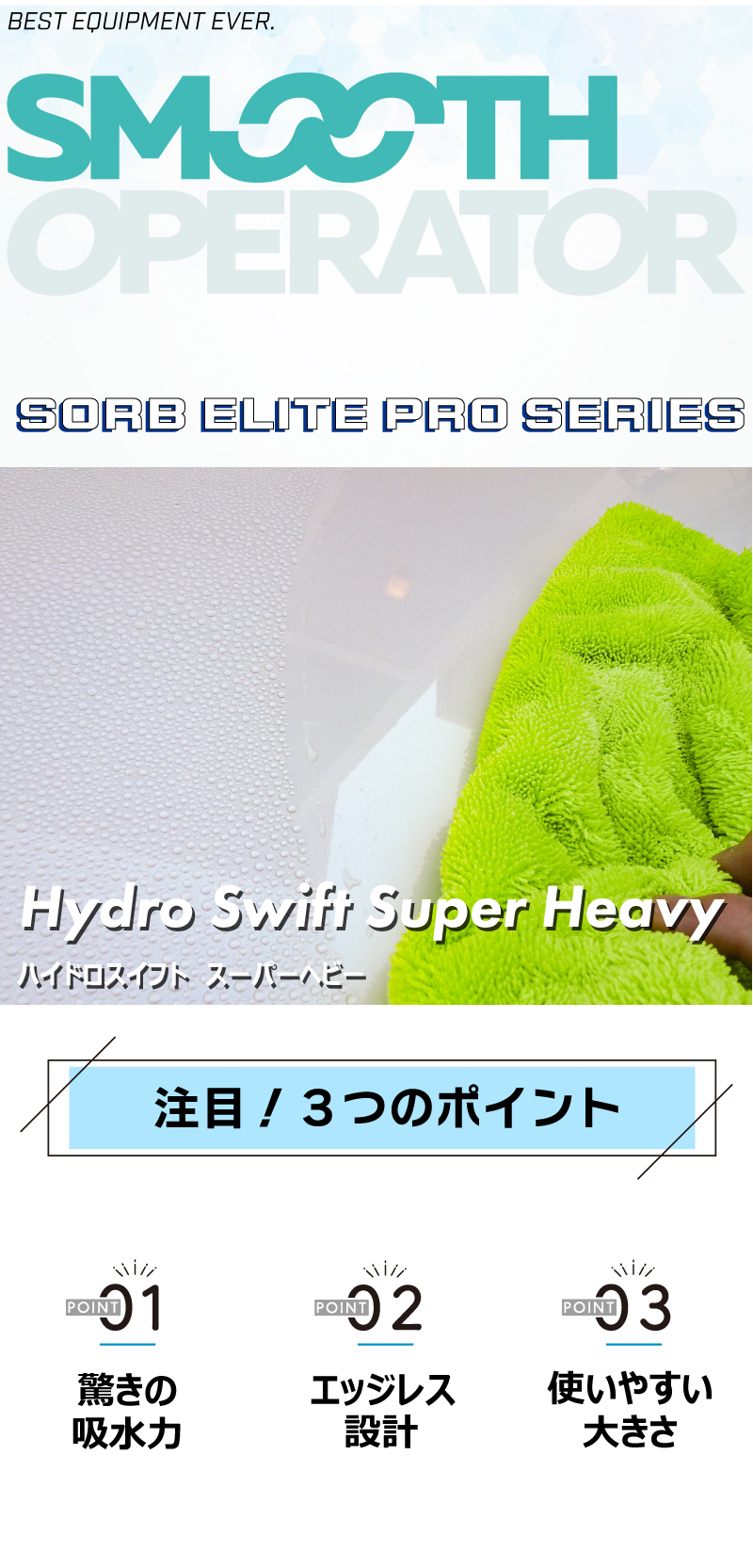 洗車用品 洗車タオル SMOOTH OPERATOR ハイドロスイフト・スーパーヘビー 超吸水ダブルレイヤー フチなし 速乾 大判サイズ