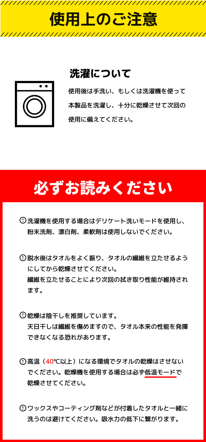 ●吸水力が高く、吹き残し、拭き筋を付けない