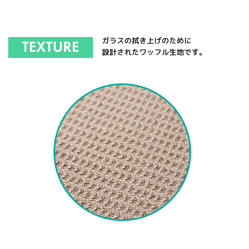 ●ワッフル地でリントをガラスに残さない仕様