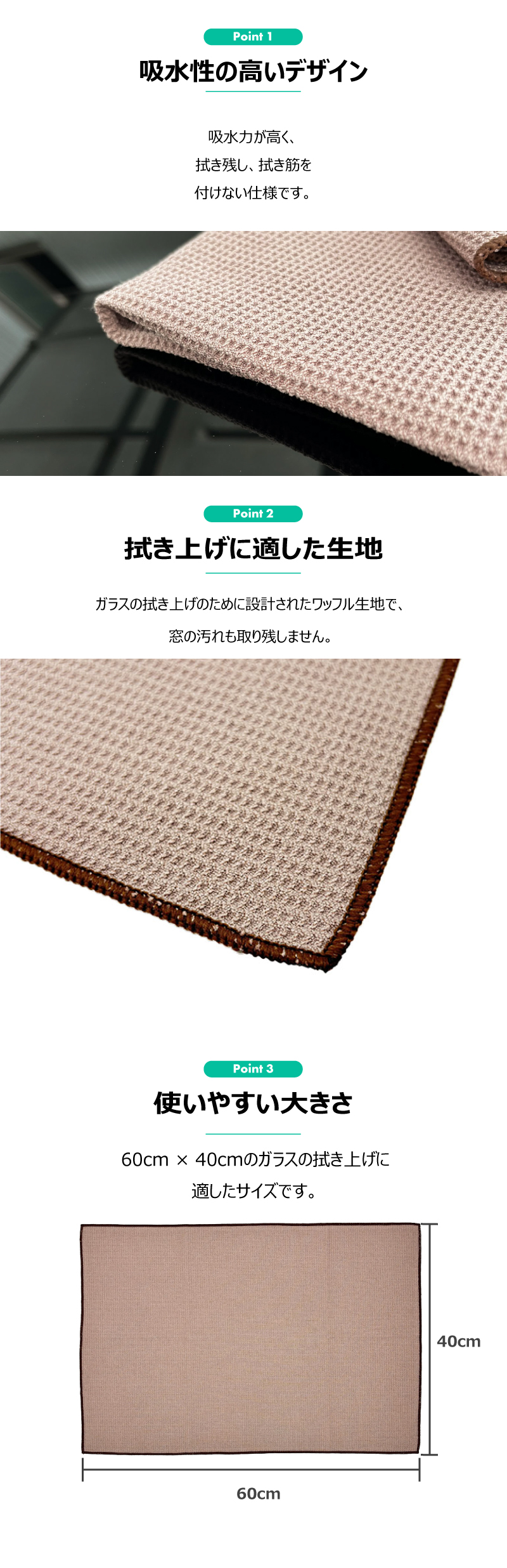 ●窓の汚れも取り残さない、ワッフル生地