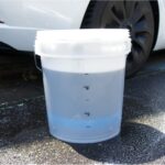 リンスレスウォッシュ液が汚れを浮かすまで数分待って、DIY DETAIL レガシースポンジ(推奨)やウォッシュパッドをバケツに浸し、直線的に1パネルずつ洗います。